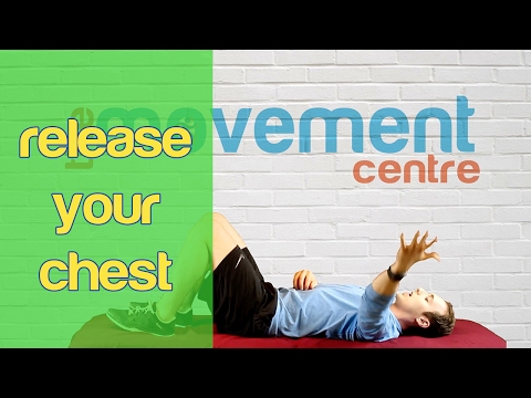 The Pec Grinder uses a release ball to stretch tight chest muscles that cause rounded shoulders and shoulder pain in desk workers.